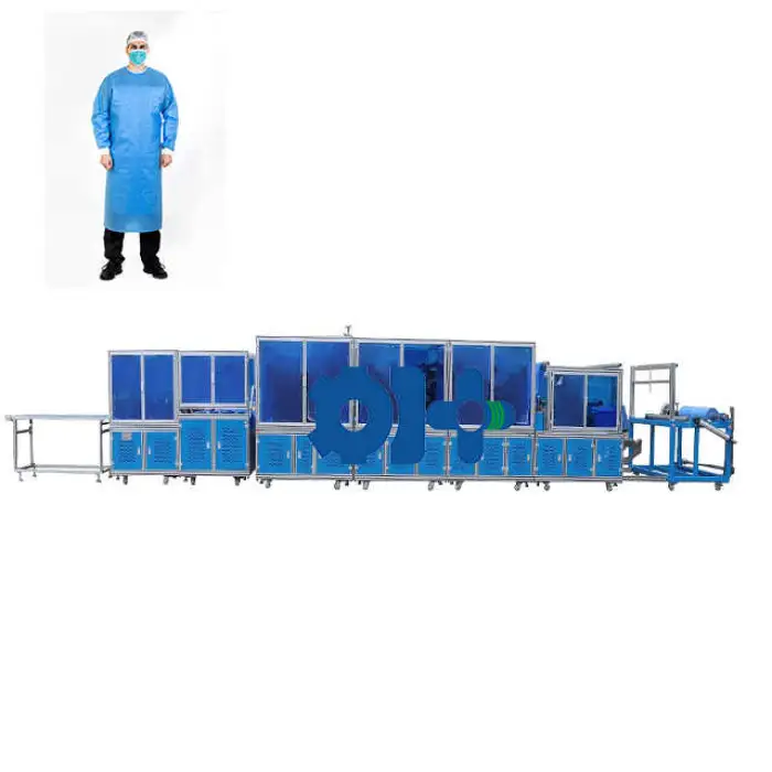 The machine can produce disposable nonwoven scrub gowns typically used in medical settings.