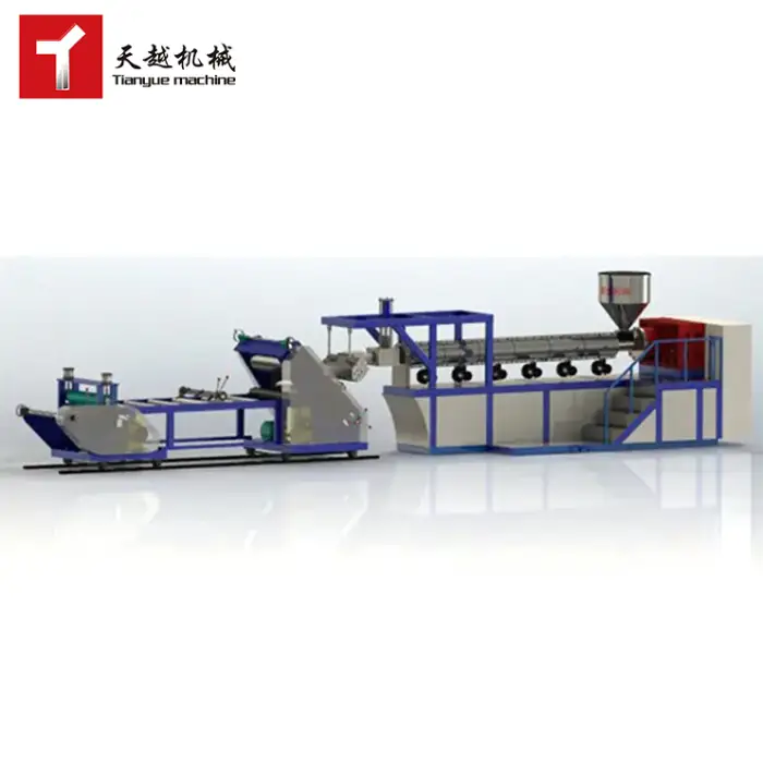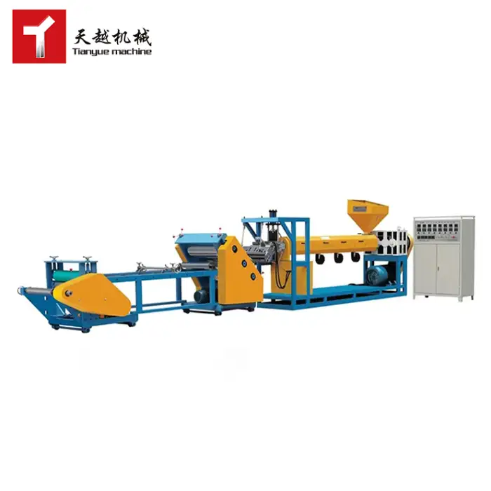 The machine is suitable for various plastic materials including PP, PE, PS, PVC, PET, and more.