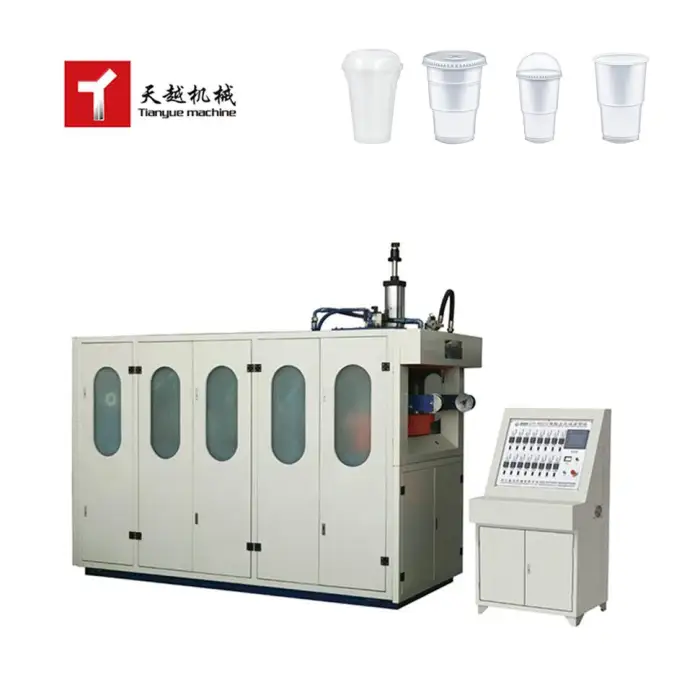 The machine is suitable for applications such as manufacturing food containers, producing disposable plastic cups, and creating lids for various packaging needs.
