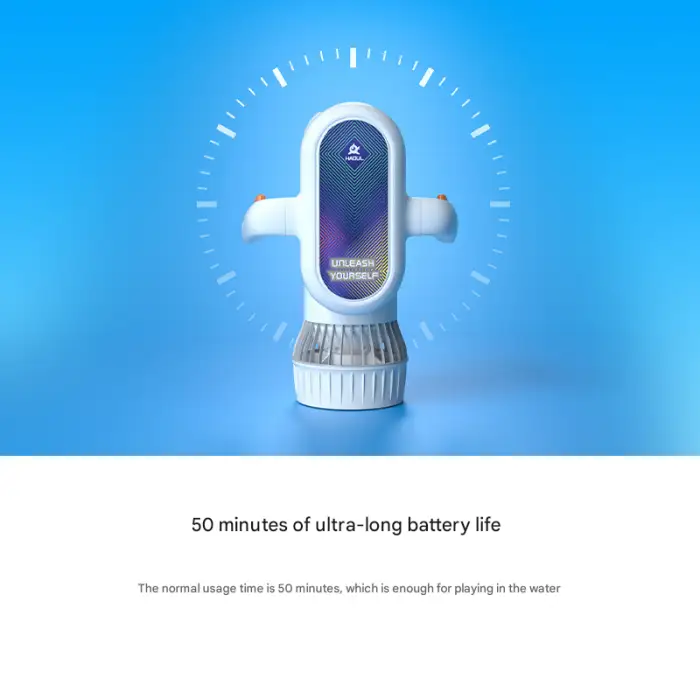 The Hagul sea scooter is suitable for various applications including fun water activities at the beach, water sports, and training for swimming and diving.