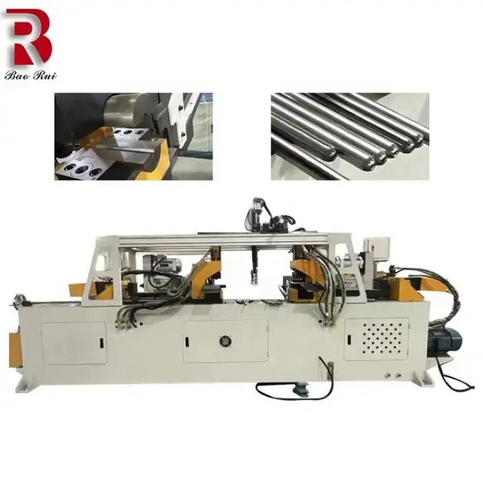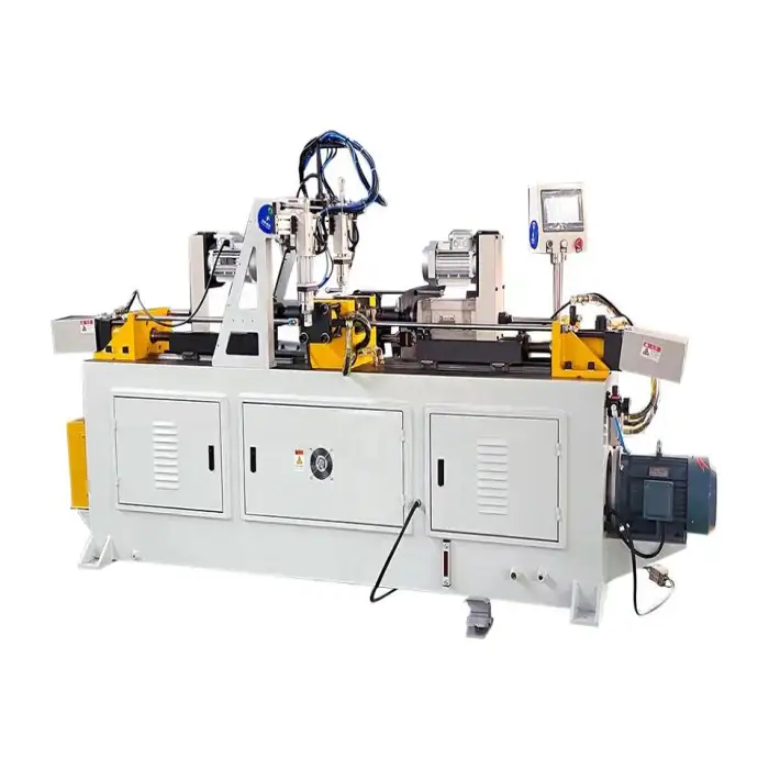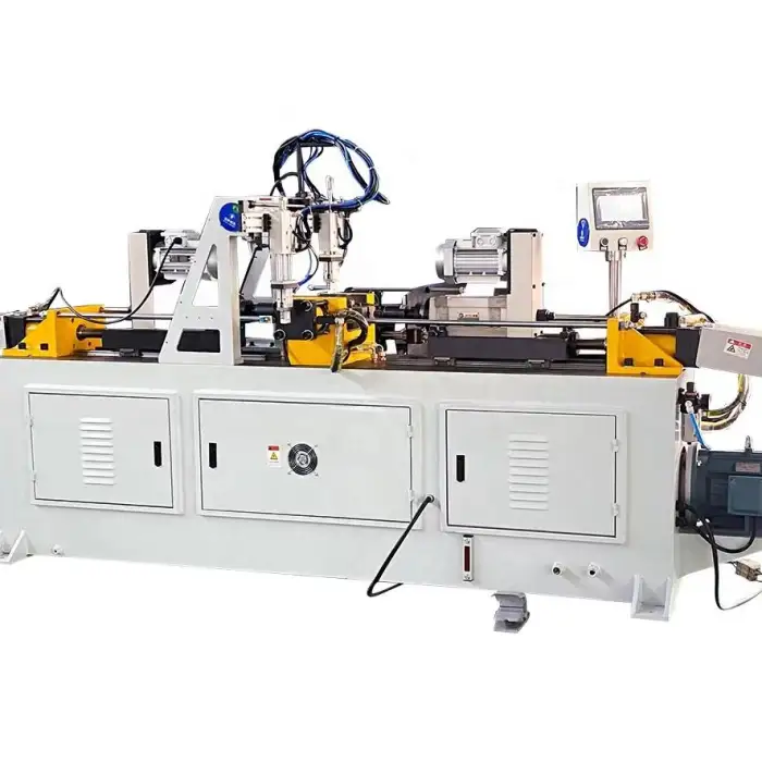 Applications include forming automotive headrests, processing metal pipes and bars, creating end shapes for various automotive components, and enhancing efficiency in manufacturing environments.