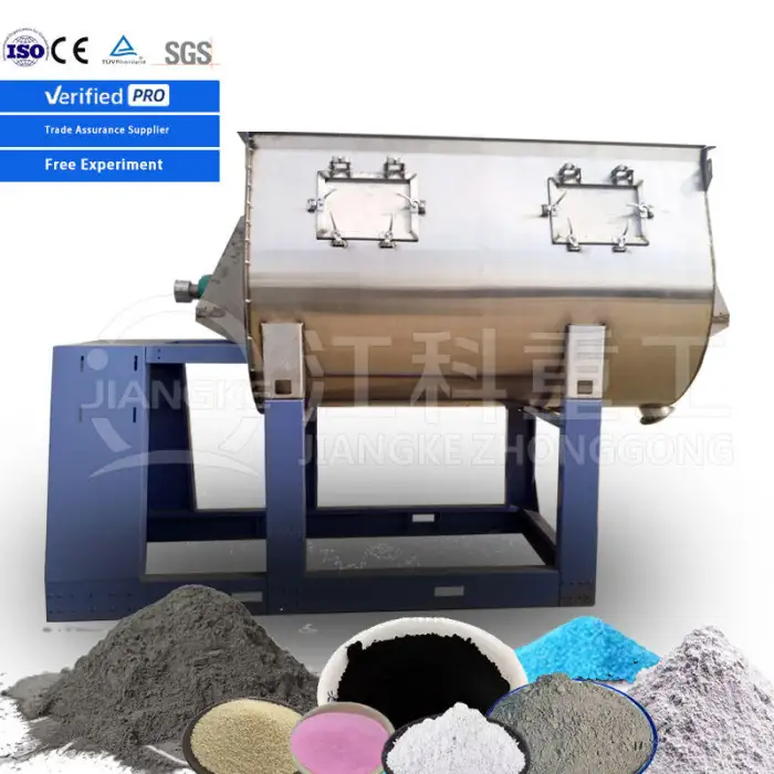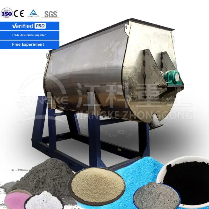 The machine is versatile and can mix various dry powder products, including cement, chemicals, food ingredients, and fertilizers.