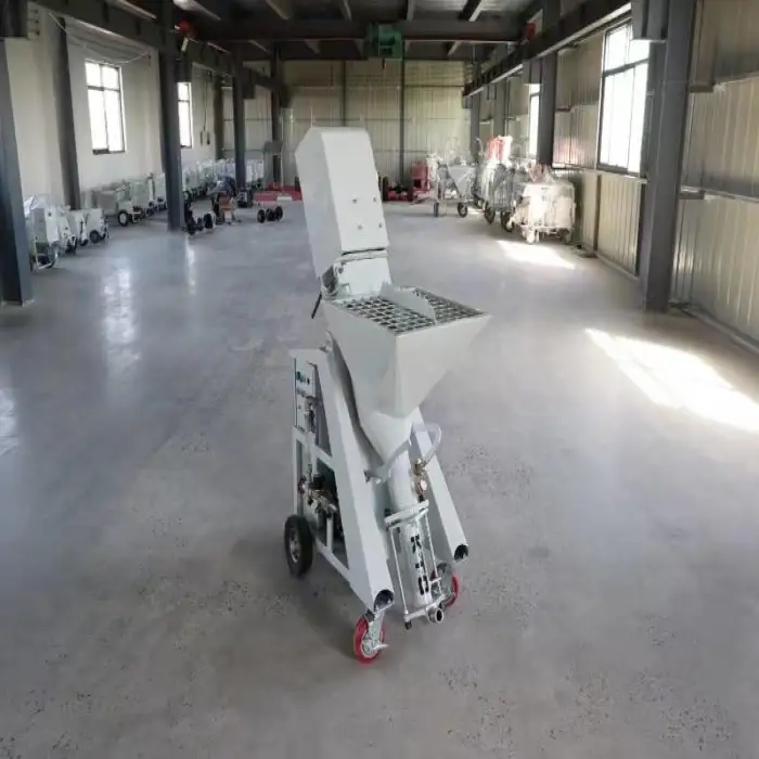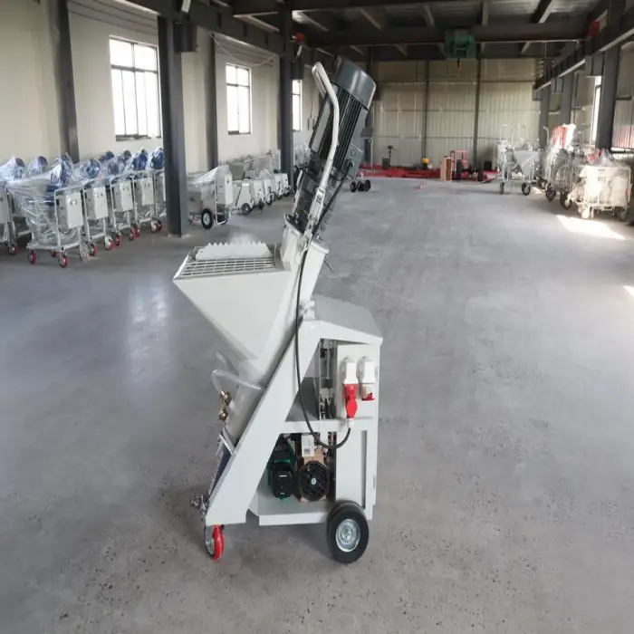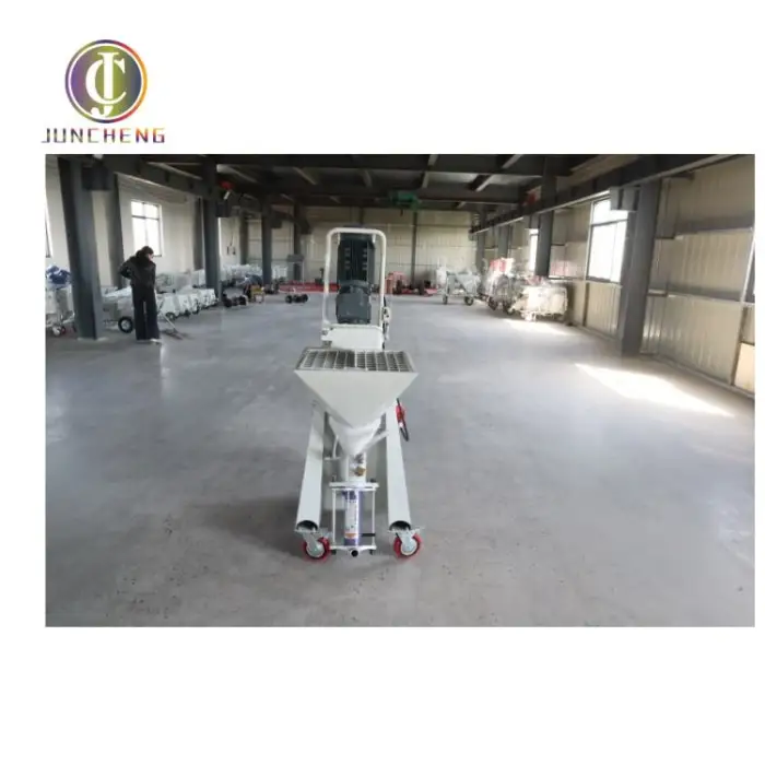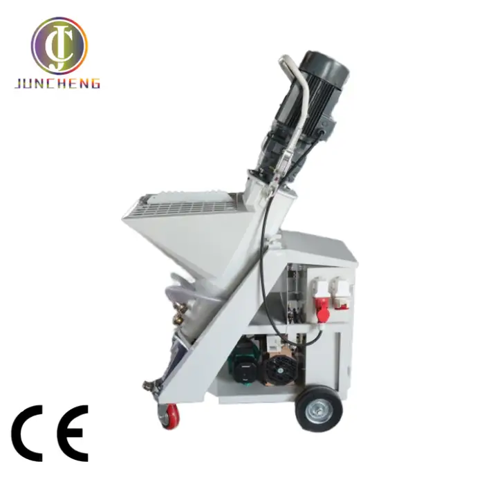 The machine is designed to spray dry-mixed mortar, gypsum plaster, and other cement-based materials.