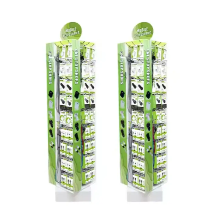 The shelf can accommodate up to 400 pieces of mobile phone accessories, including 140 PCS of 10FT USB to Type C cables and other products.