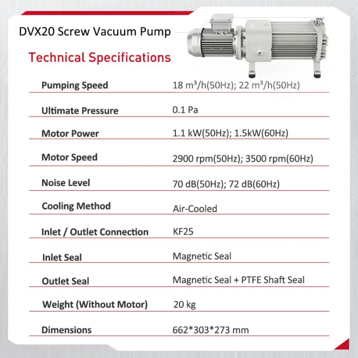 The DVX20 can achieve an ultimate pressure of 0.1 Pa.