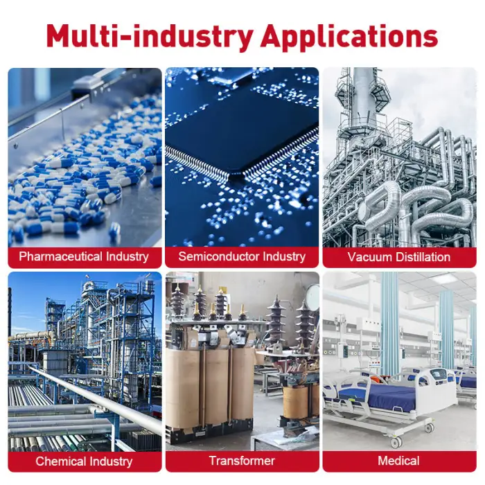 The DVX20 is suitable for various industries including electronics, metallurgy, chemicals, food, machinery, medicine, and aerospace.