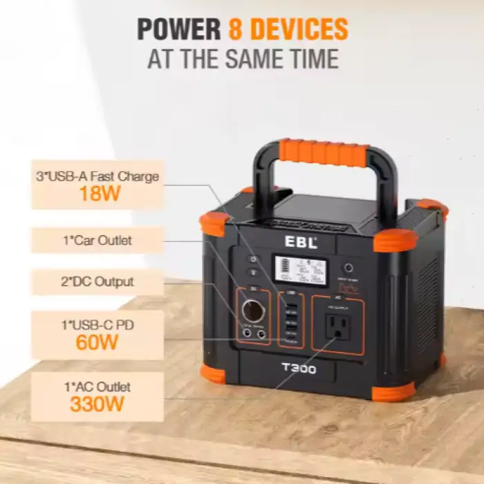 The power output of the EBL 300W Solar Generator is 288.6Wh, sufficient for a variety of devices.