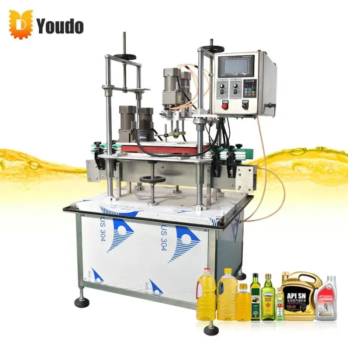 The machine supports various cap types, including screw caps and pressing caps, making it versatile for different packaging needs.