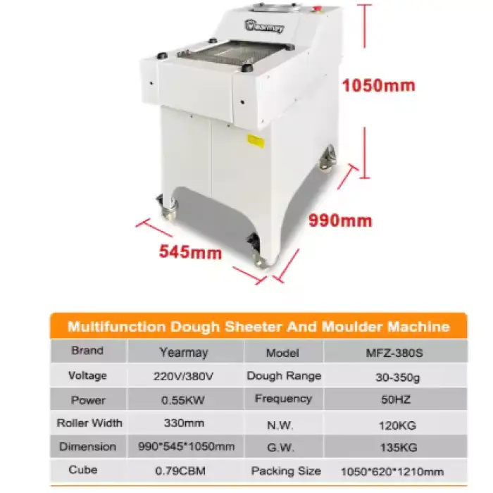 The Electric Bakery Toast Bread Dough Forming Machine is designed to shape various types of bread including toast bread and baguettes.