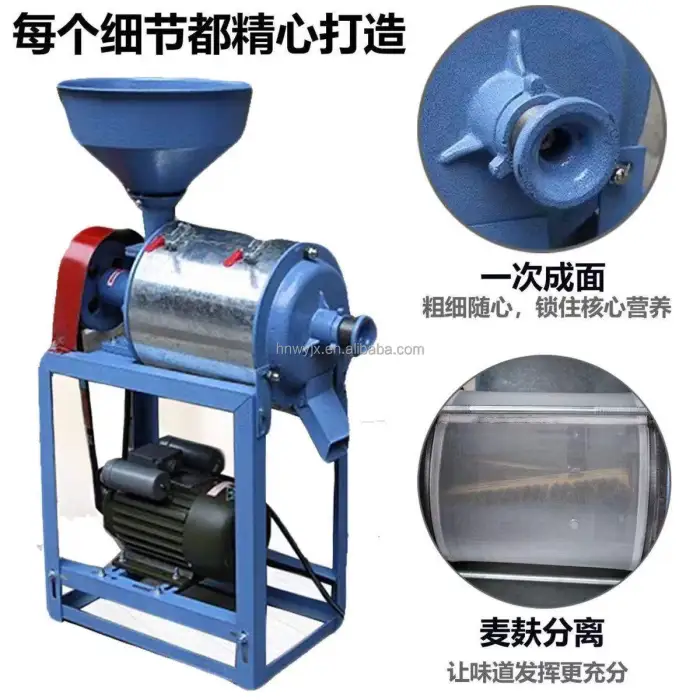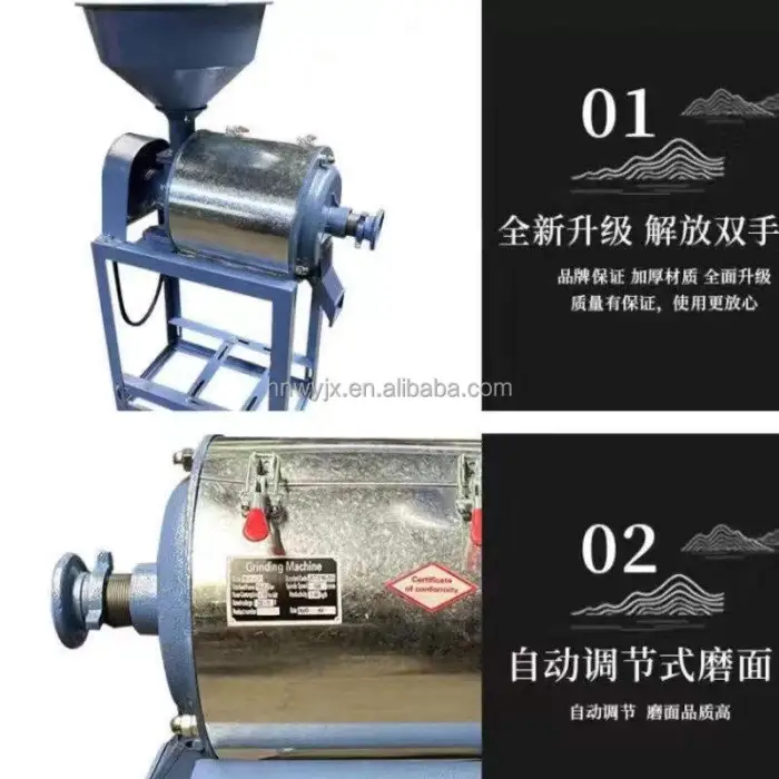 Key features include high grinding efficiency, low operating costs, multifunctionality for various grains, and durable construction.