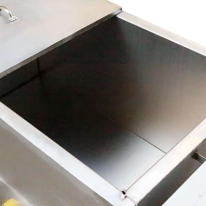 The machine is constructed from durable stainless steel, ensuring longevity and resistance to corrosion.