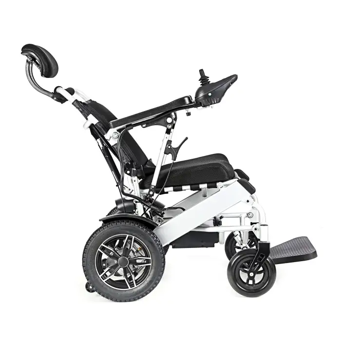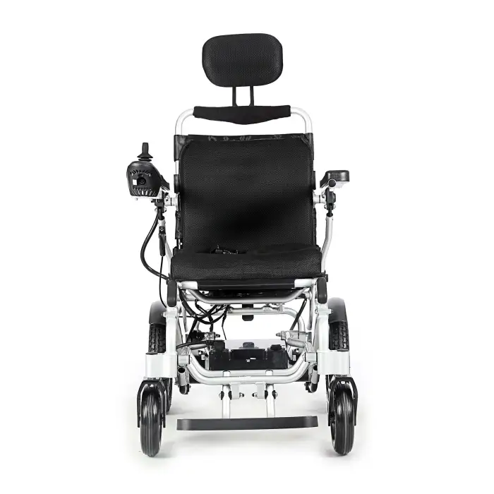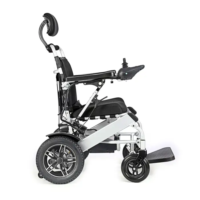 The wheelchair features easy-to-use joystick controls that allow for smooth and intuitive operation.