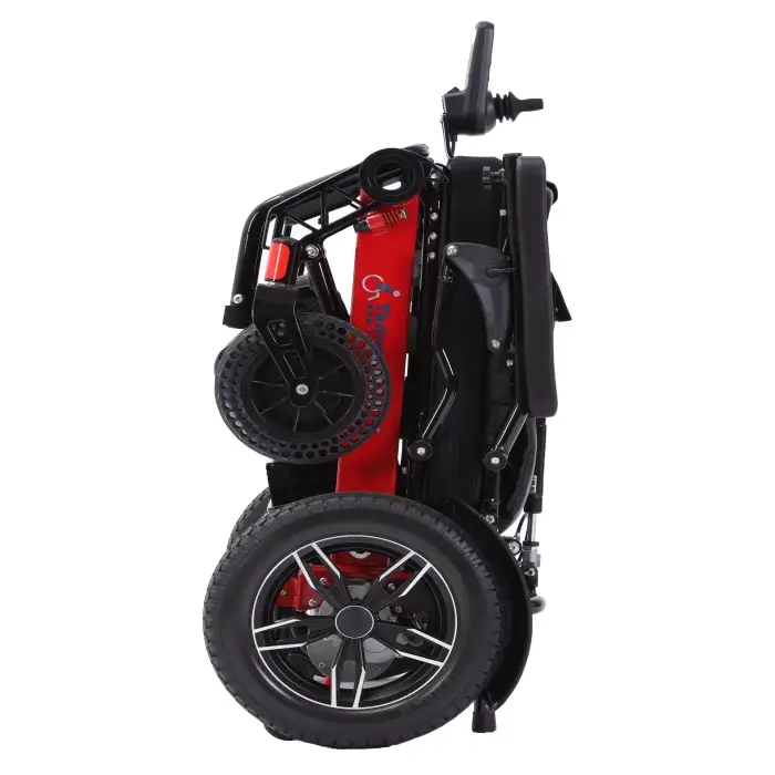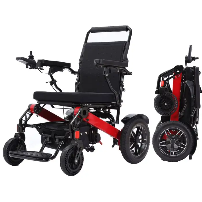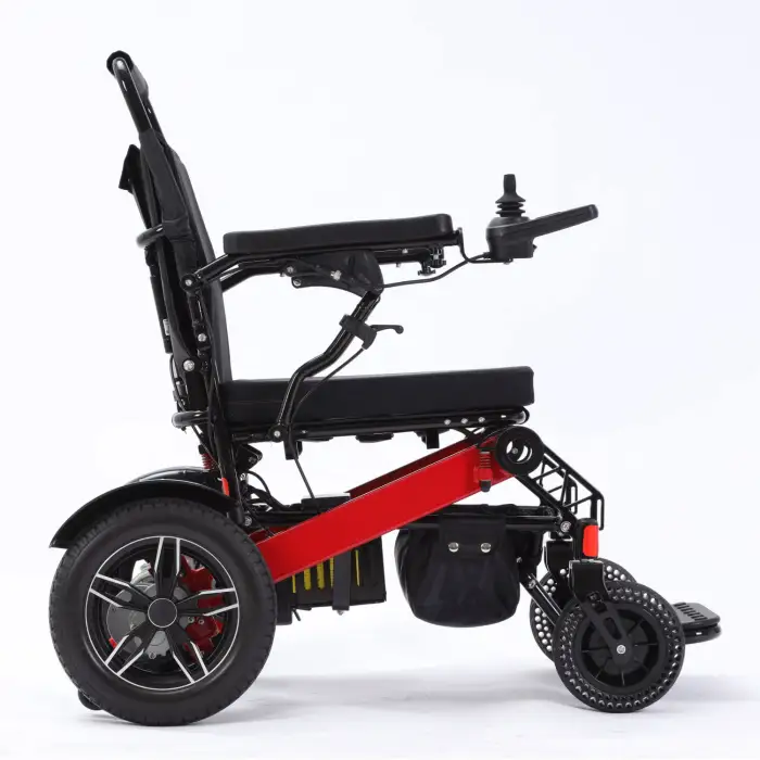 The Electric Wheelchair is made from a durable aluminum alloy, ensuring a strong yet lightweight frame.