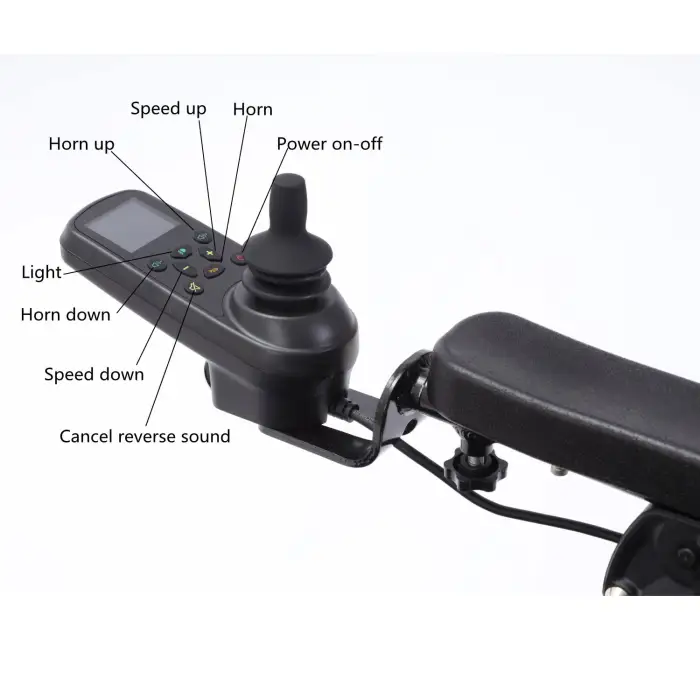 The remote control is user-friendly. Simply press the forward or backward buttons to move the wheelchair, and use the left and right buttons to steer. Make sure the wheelchair is powered on before using the remote.