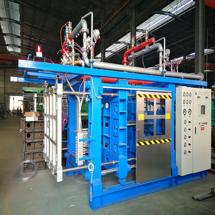 The machine can produce various foam products, including boxes for fish packaging, ice cream containers, decorative cornices, and packaging solutions for TVs and electronics.