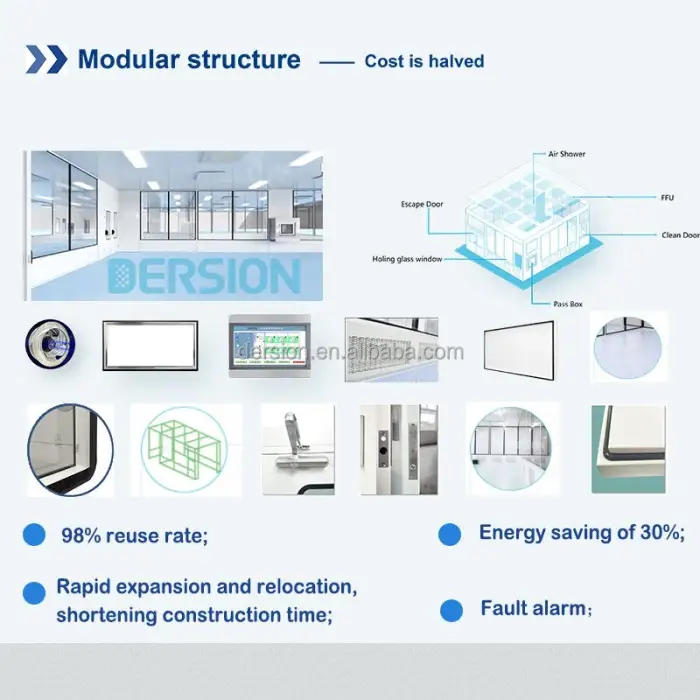 The clean room is constructed from high-quality stainless steel (SUS304/201/Q195) and galvanized sheet.