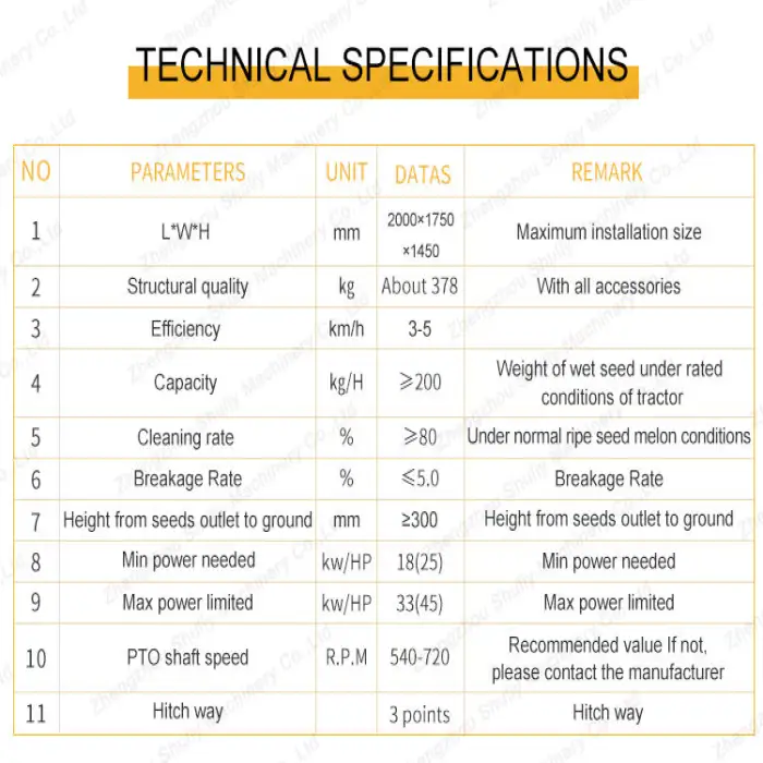 The harvester is compatible with tractors that have a power range of 25 to 45 HP.