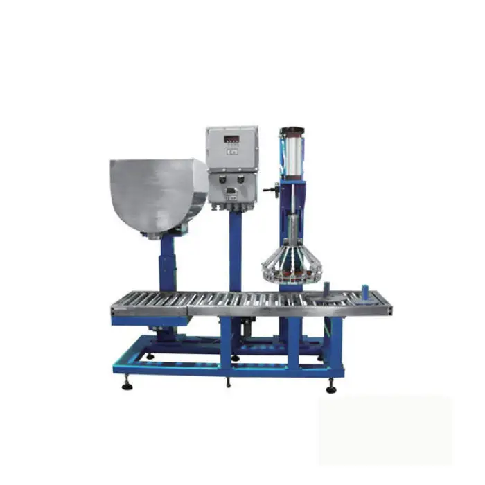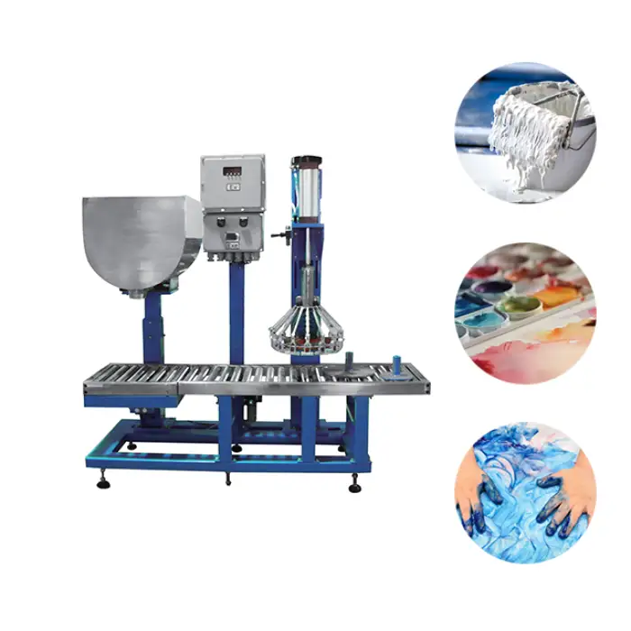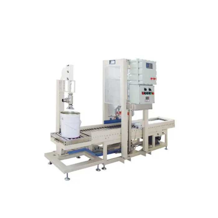 The machine is designed to fill liquids such as oil, paint, and ink into barrels and cans.