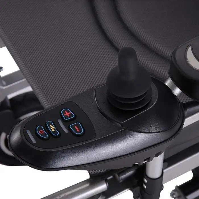 The wheelchair is equipped with a lead-acid 24v12.8Ah battery.