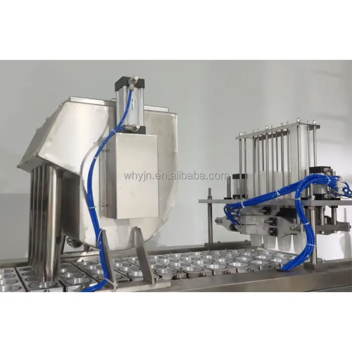 The machine uses heat sealing for secure packaging.