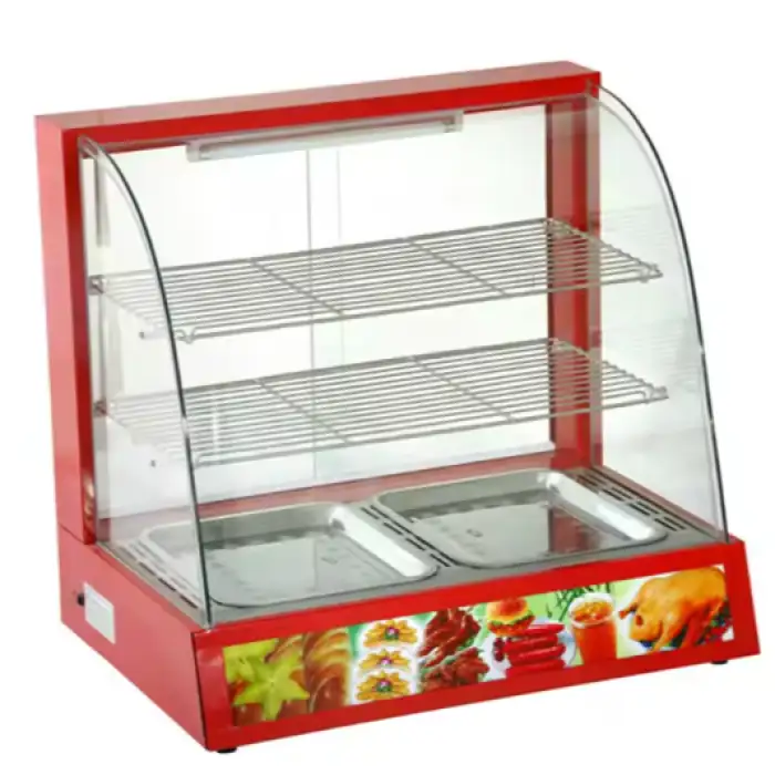 The anti-fogging feature ensures clear visibility of the displayed items, allowing customers to see the food without obstruction.