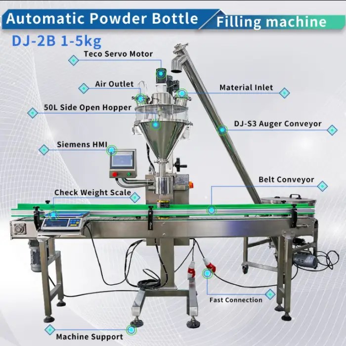 This machine offers a filling accuracy of ±0.5%-2%, ensuring precise measurement of the powders during the filling process.