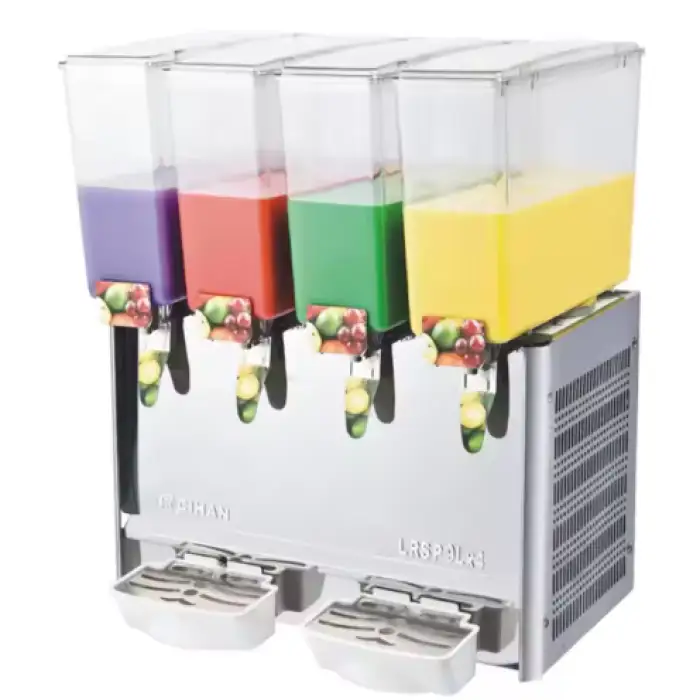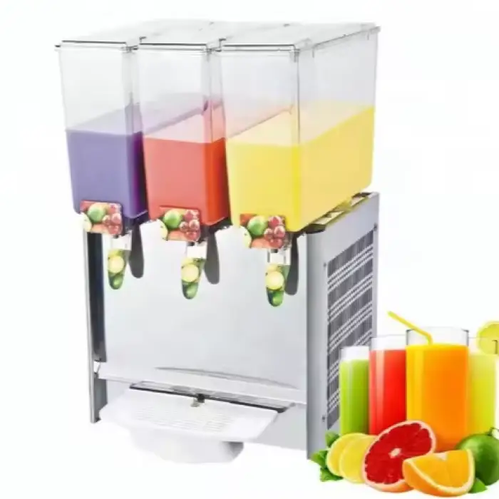 Key features include efficient juice dispensing, compact design, easy operation and maintenance, high-quality refrigeration, and durable construction.