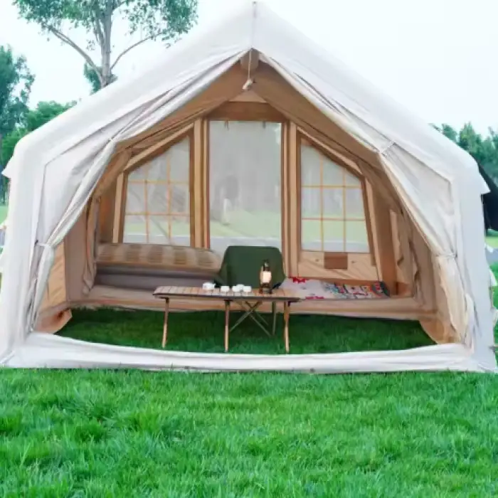 The tent features a spacious design with one bedroom and one living room, providing ample space for a family or group of friends.