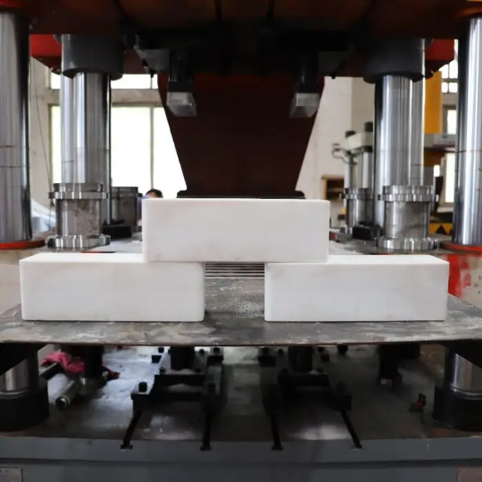 The Four-beam Four-column 630-ton Salt Brick Hydraulic Press is powered by hydraulic power.