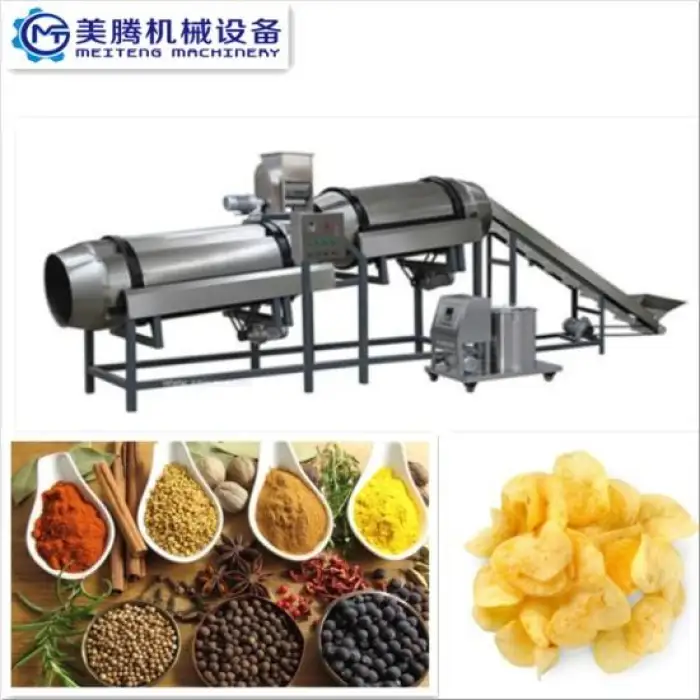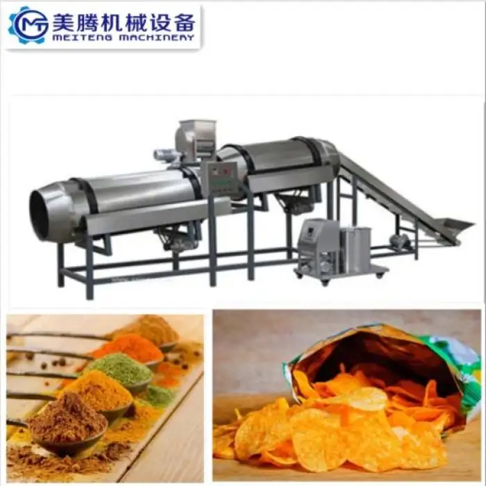 The Fried Chips Seasoning Machine is designed to enhance the taste of fried foods by using a special flavoring system, making it ideal for seasoning fried chips and snacks.