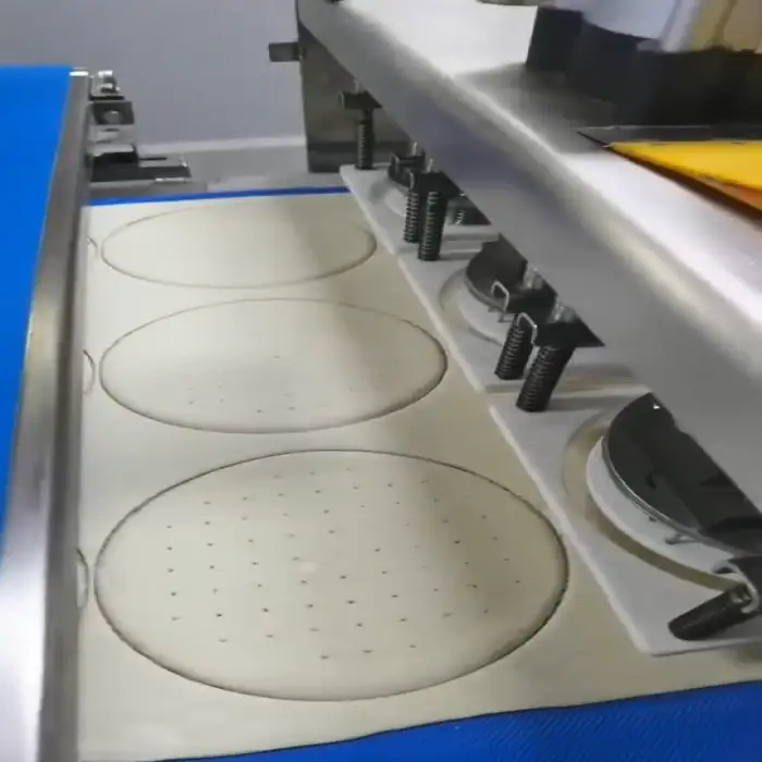 The Frozen Pizza Dough Machine Line boasts a high-performance production capacity of 4000-5000 pieces per hour, making it suitable for large-scale pizza production.