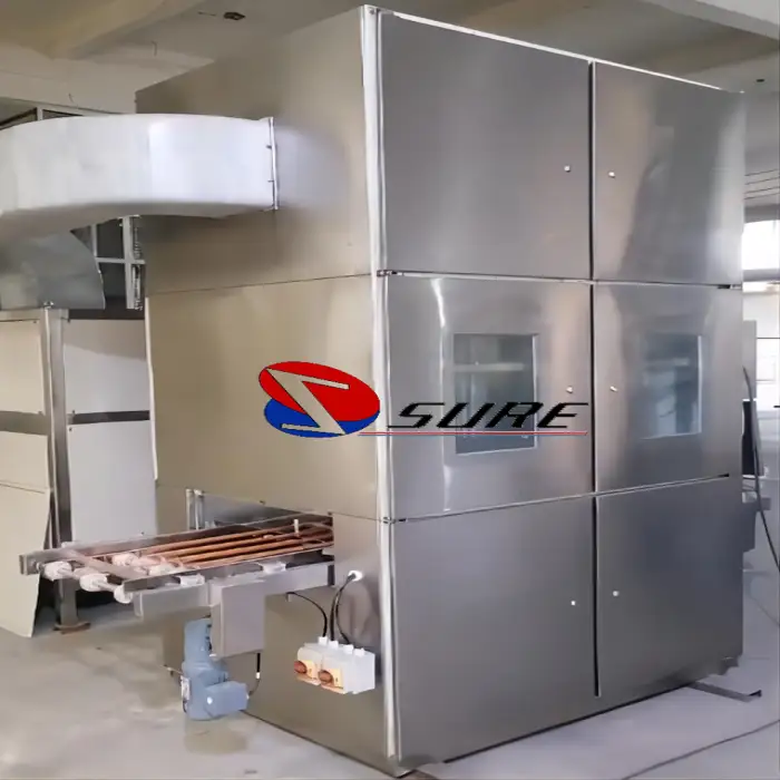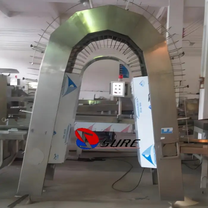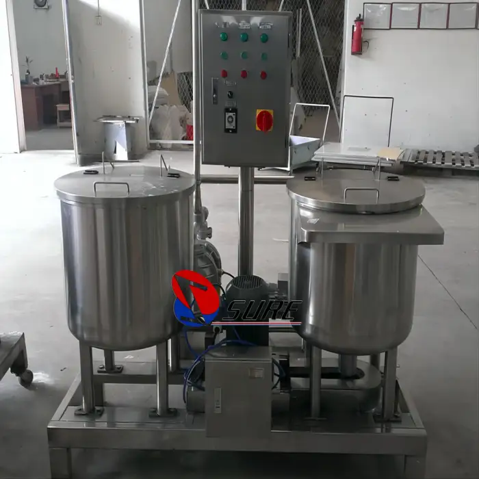 The machine is constructed with food-grade materials, ensuring compliance with safety standards in food production.