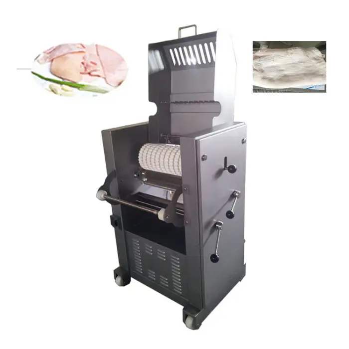 The primary function of this machine is to efficiently remove pig skin from pork, streamlining the meat preparation process.