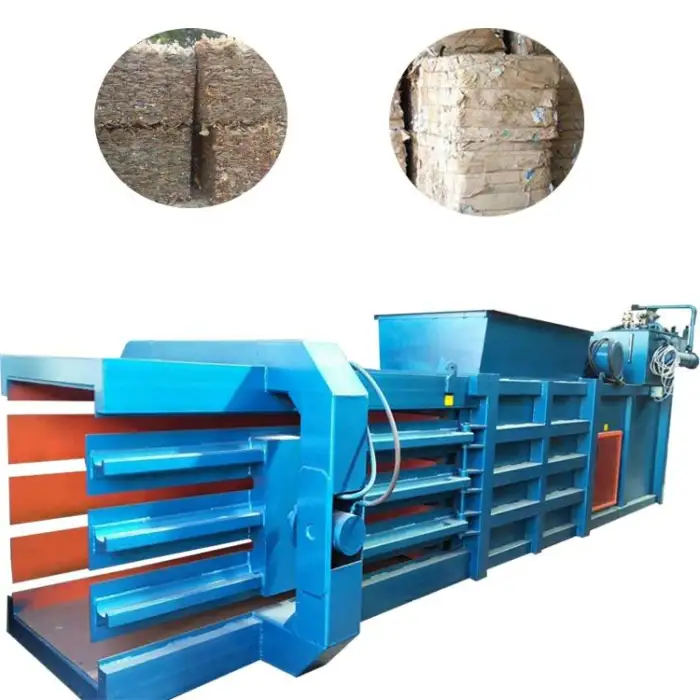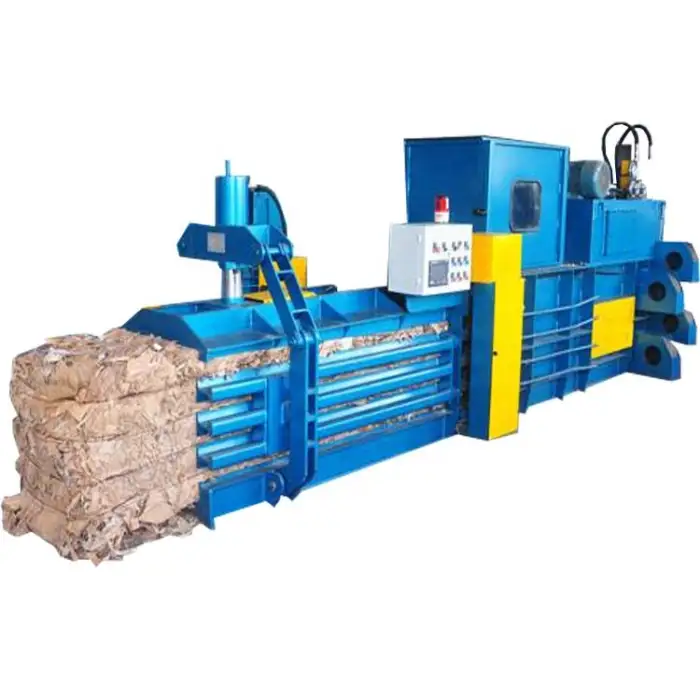 The Fully Automatic Horizontal Baler is designed to compress waste materials such as paper and cardboard. It can also handle various packaging materials like plastic, metal, glass, and wood.