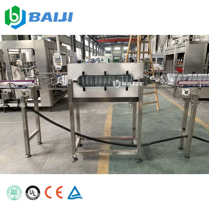 The finished can packaging process includes a PE film wrapping machine and a carton box packing machine.