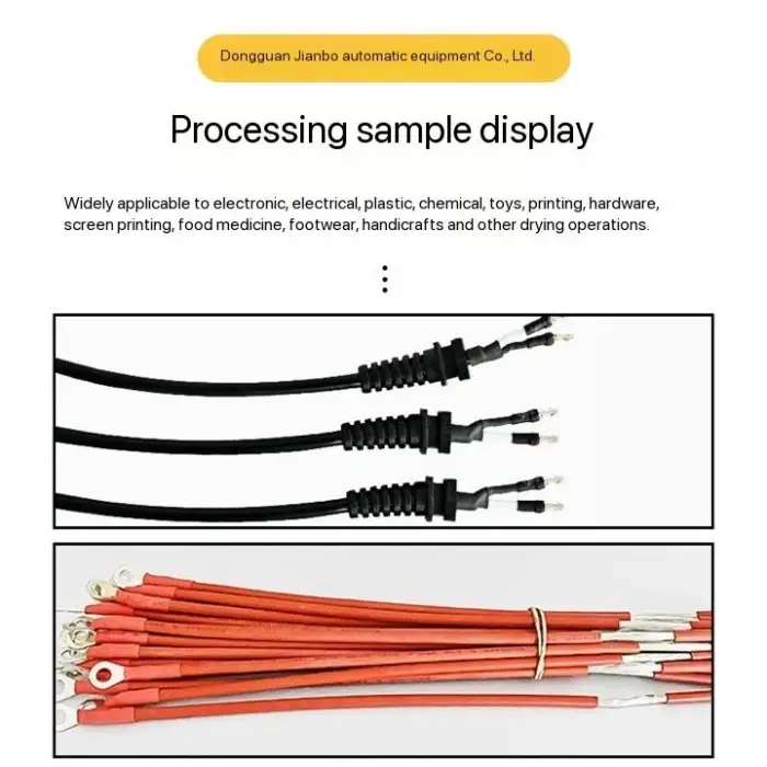 This machine is suitable for manufacturing cables, electronics assembly, automotive wiring harness production, electrical insulation applications, and general heat shrink tubing needs.