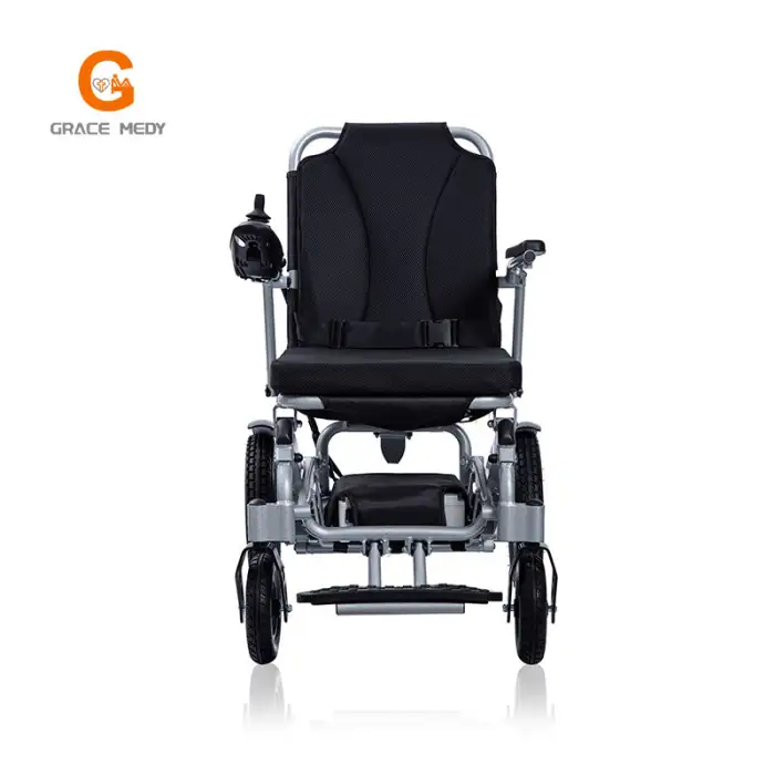 The wheelchair is constructed from durable aviation aluminum alloy, ensuring lightweight and strength.
