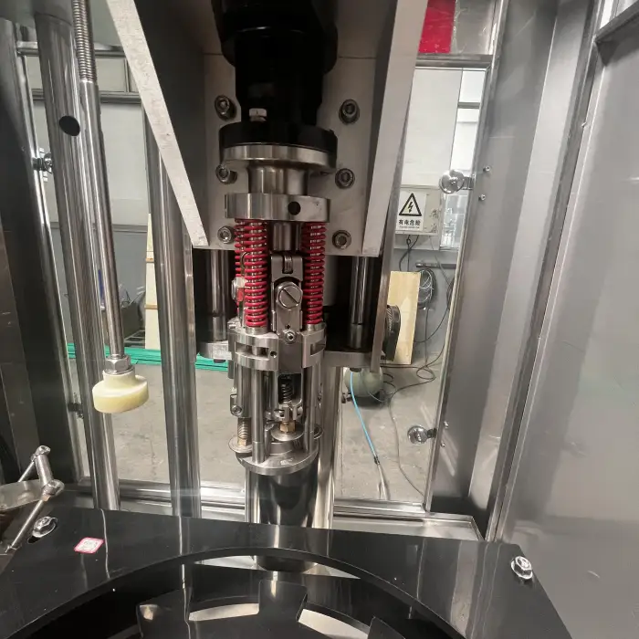 The capping is done using a rotary type mechanism with a four-wheel balanced type capping head.