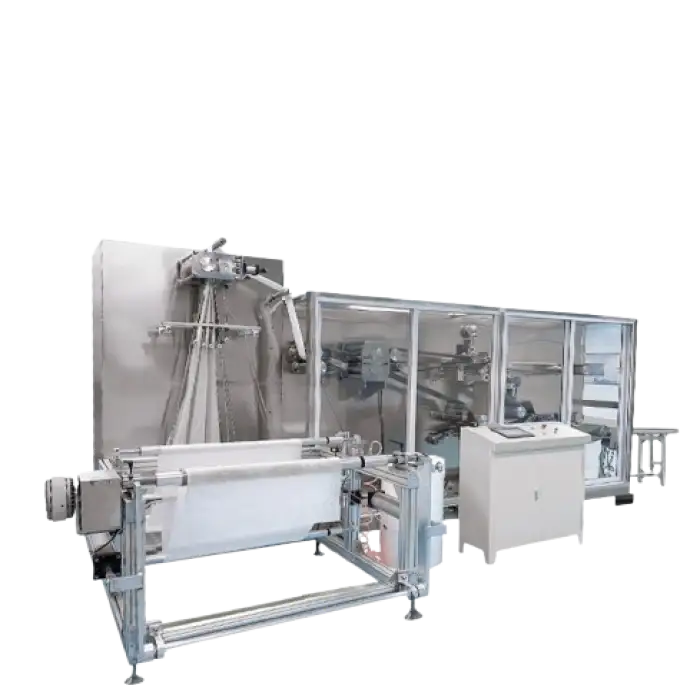 The machine is designed for non-woven materials suitable for surgical bed sheets.