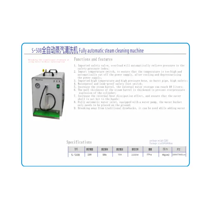 The Fully Automatic Water Inlet Steam Cleaner operates on a machinery power source.