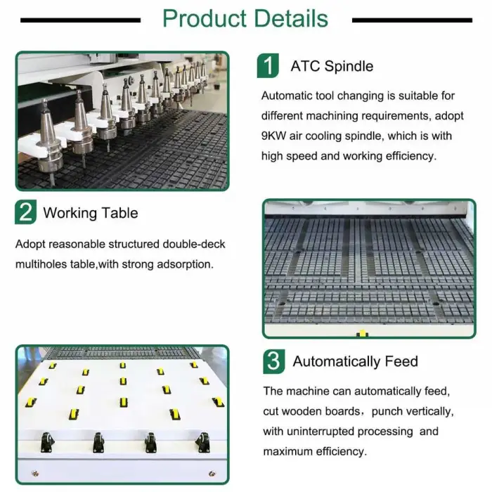 The machine is equipped with a powerful 9 kW air-cooling spindle motor.