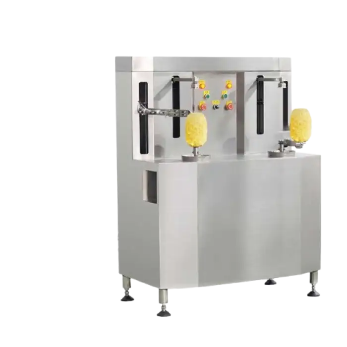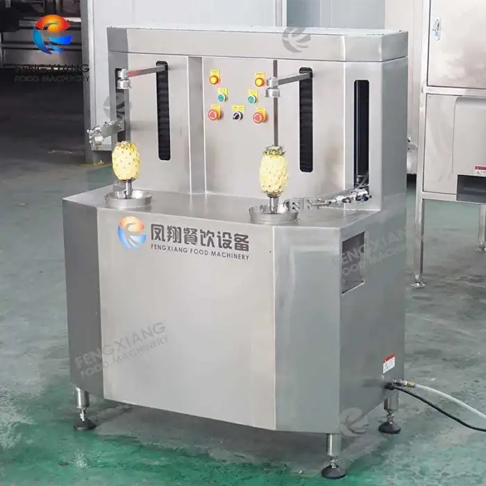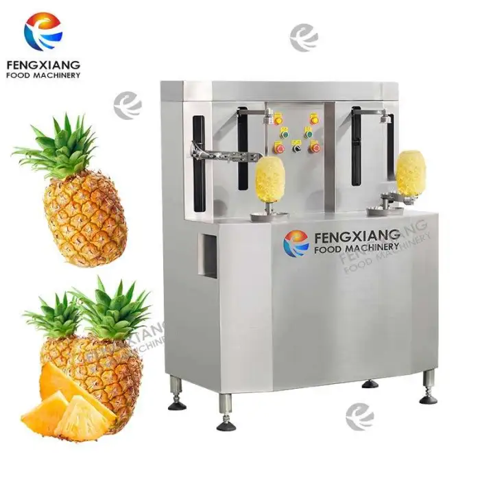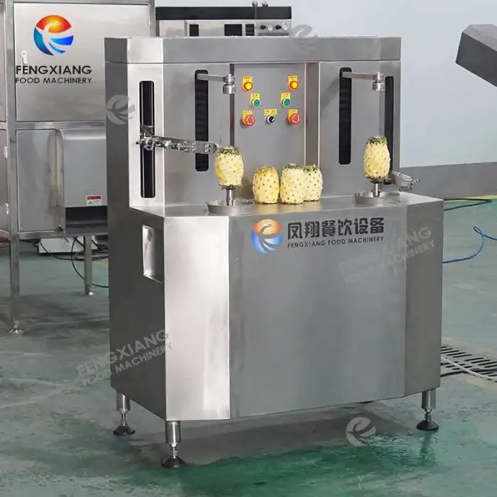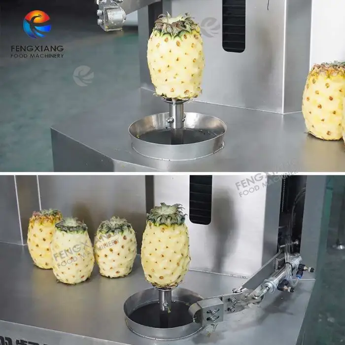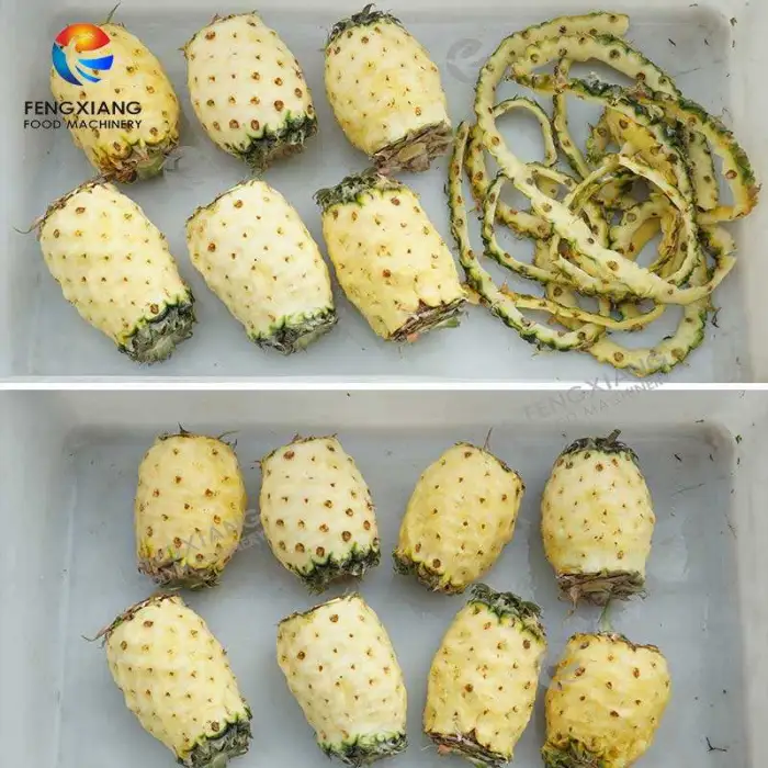 The FXP--II can peel between 500 to 600 pineapples per hour, making it highly efficient for food processing.