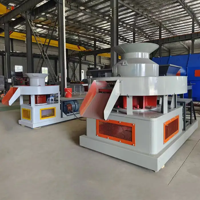 The machine can process a variety of materials including sawdust, manure, straw, and wood.