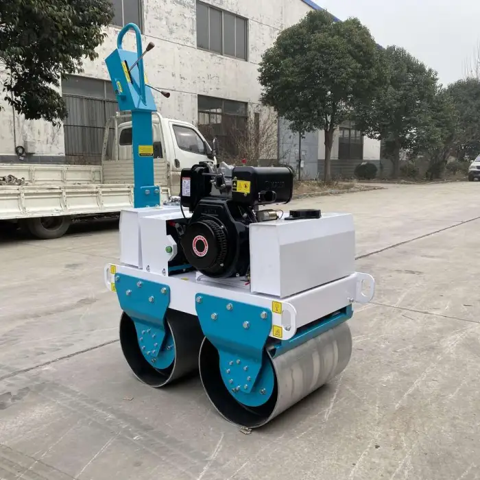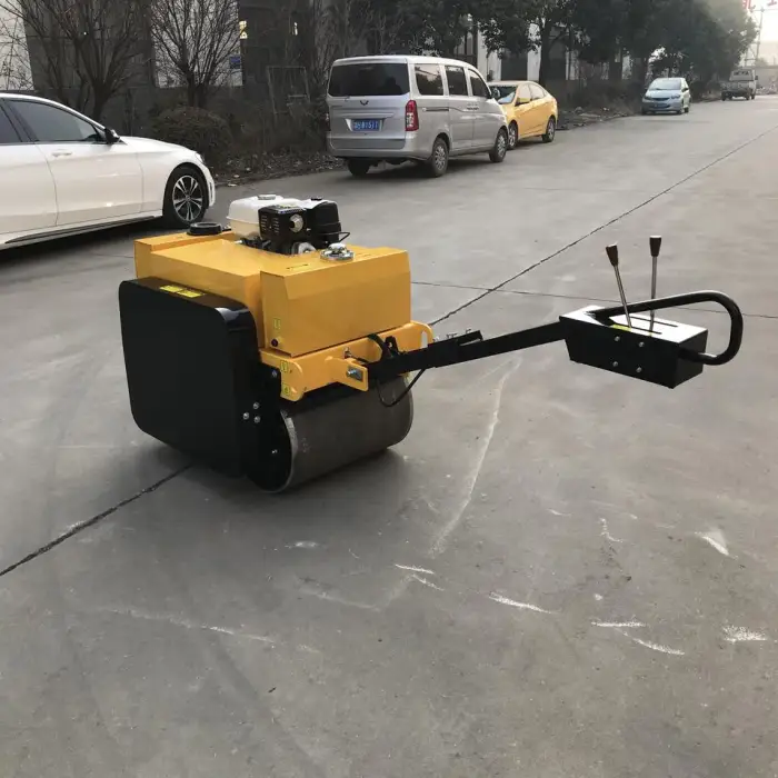 The road roller has a compact design, making it convenient for transport and operation in tight spaces.