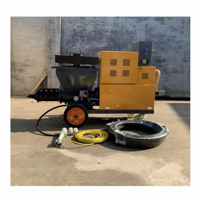 The machine can be used for spraying mortar for wall finishing, applying plaster on ceilings, filling gaps and cracks, and mixing and spraying cement in construction.