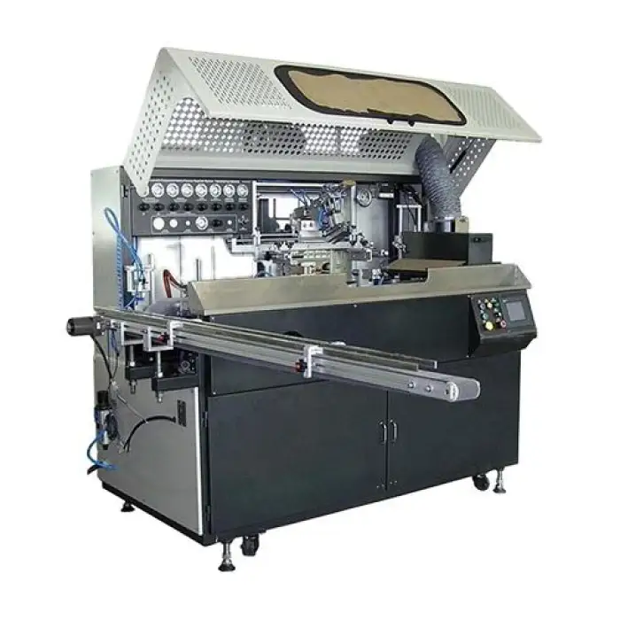 The Glass Silk Printing Machine is specifically designed for printing on glass surfaces, including glassware and decorative items.