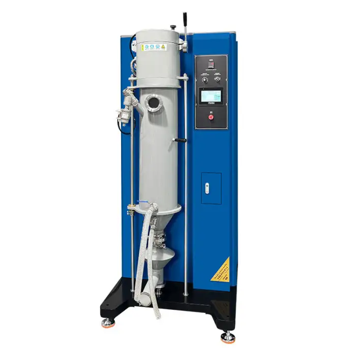 Key features include high precision for fine powder production, fast melting time, one-key operation, and durable components.