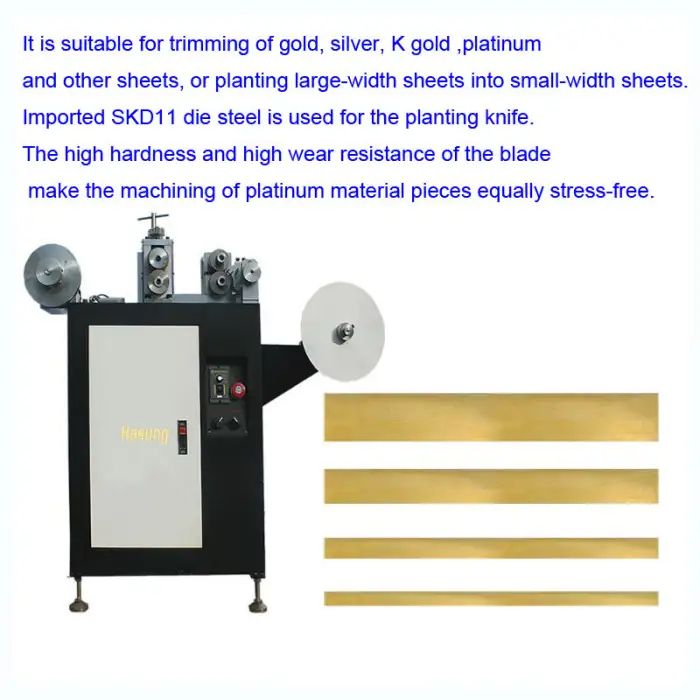 The Gold Sheet Metal Cutting Equipment is suitable for cutting various types of metal sheets, including gold, silver, copper, aluminum, and other metals commonly used in jewelry making and metal fabrication.