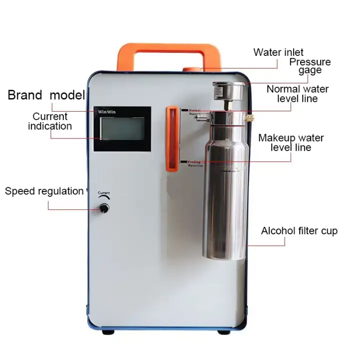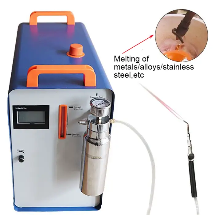 The machine uses a combination of hydrogen and oxygen to create a flame that is hot enough to weld and melt metals with precision.