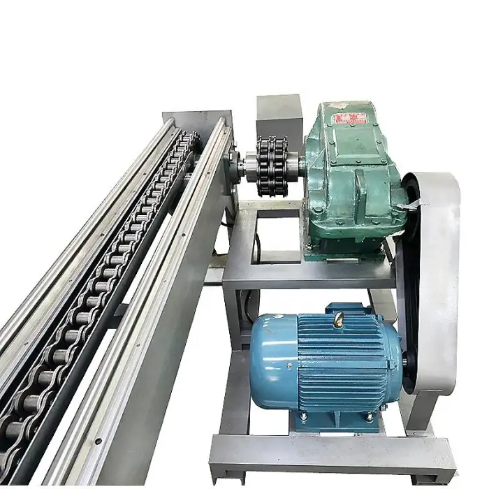 The machine uses chain transmission with a 1.5-inch enlarged chain for effective operation.